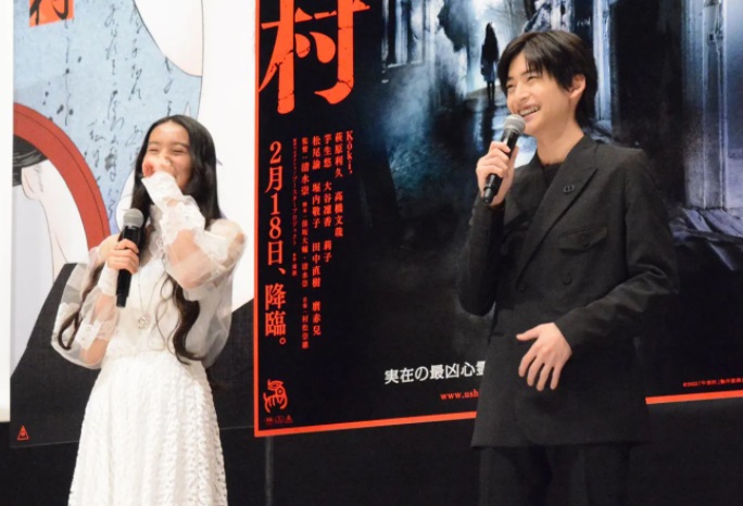 今作は2020年2月に公開され、ヒットを記録した清水監督作品「犬鳴村」、2021年2月に公開された「樹海村」に続く、“恐怖の村”シリーズ第3弾。本作の舞台は北陸地方の最恐スポットで、都市伝説「ウシノクビ」などを盛り込んだストーリーが展開される。イベントには、俳優の高橋文哉(エーチームグループ・エーライツ)、芋生悠、大谷凜香、松尾諭、メガホンをとった清水崇監督も出席した。