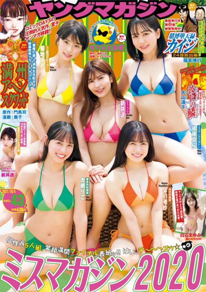 また、同号の表紙&巻頭グラビアには新井を含めた「ミスマガジン2020」の受賞者5人が集結。5人そろってのラストロケで、成長した美しさをビキニ姿でたっぷりと見せる。