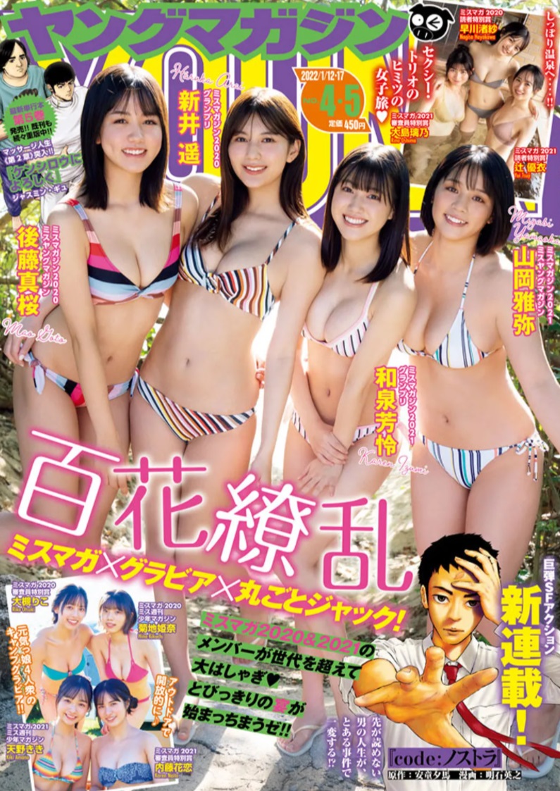 そのほか、新井遥(エーチームグループ・エーライツ)、和泉芳怜、後藤真桜、山岡雅弥、内藤花恋(エーチームグループ・エーライツ)、大槻りこ、菊地姫奈、天野ききが本誌でグラビアを飾る。